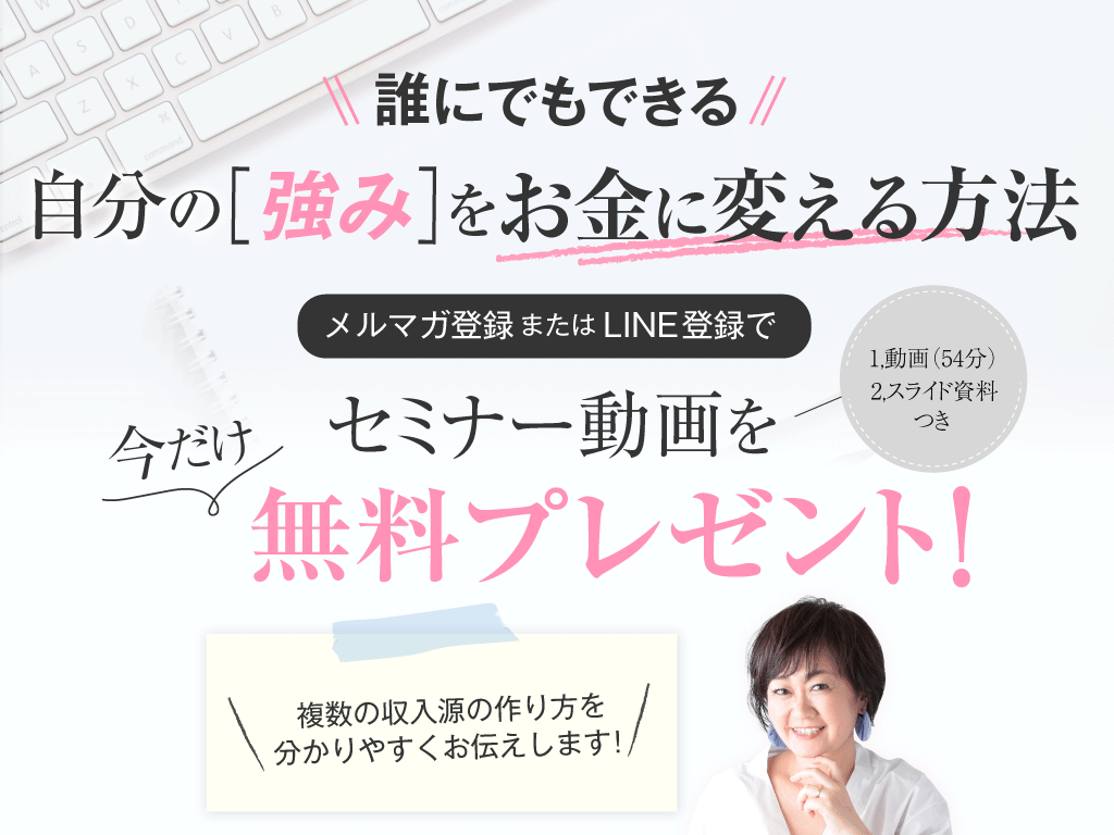 ◯◯個の収入源をもつ山口朋子が、だれにでもできる、自分の強みをお金に変える方法をお伝えします。